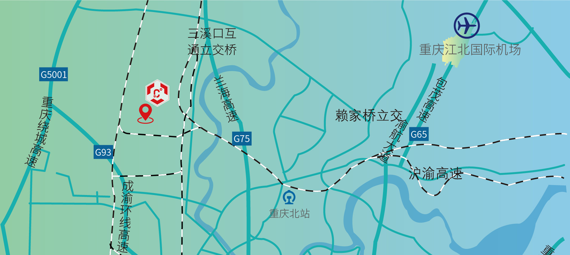 路線(從沙坪壩站方向):沿沙坪壩站東路行駛1.2公里→左轉(zhuǎn)進入南開下穿行駛1.1公里→右前方進入沙坪壩站西路行駛1.9公里→進入梨高路行駛1.2公里→進行進入馬桑灣大橋行駛1.8公里→進入G93成渝環(huán)線行駛14.8公里→出高速進入→遠(yuǎn)懷路行駛3.8公里→到達亞冷重慶沙坪壩園區(qū)。