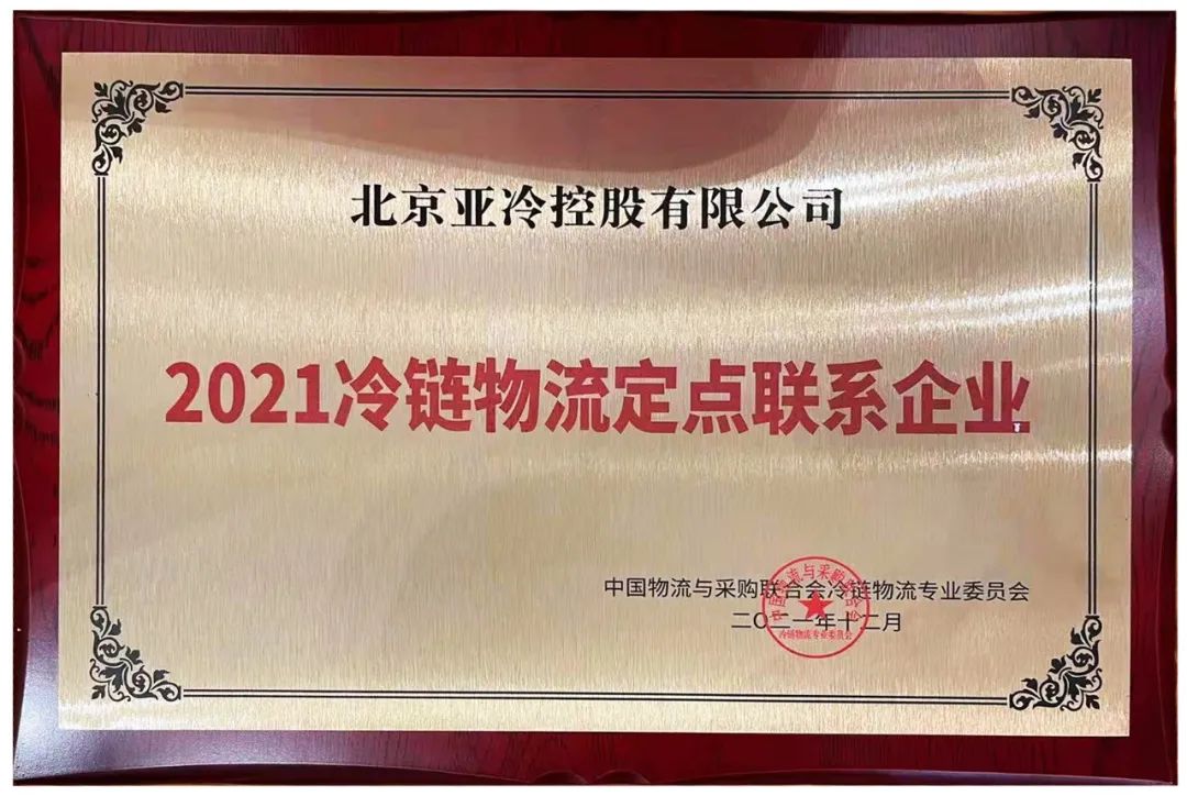 會議同期,亞冷被授予“2021冷鏈物流定點聯(lián)系企業(yè)”