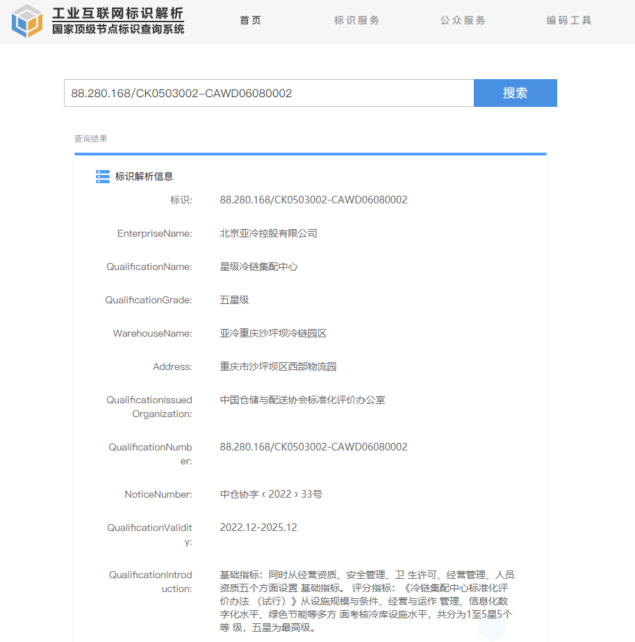 這是行業(yè)內(nèi)首次建立冷鏈集配中心標準化體系,并且開展的第一批等級資質(zhì)評標項目,亞冷重慶沙坪壩冷鏈園區(qū)一舉拿到最高標準“五星級冷鏈集配中心”資質(zhì),這代表著該園區(qū)在設(shè)施規(guī)模與條件、經(jīng)營與運作管理、信息化數(shù)字化水平、綠色節(jié)能等多方面均達到國內(nèi)頂尖水平。這得益于亞冷是同行業(yè)中體系標準建設(shè)起步早、標準較高、執(zhí)行較好的企業(yè)。